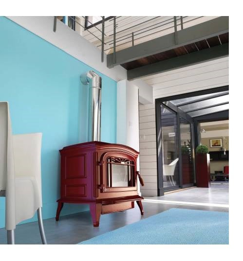 Alliez performance de chauffe, élégance classique et fabrication française avec le poêle à bois Bradford émaillé d’INVICTA. Habillé de fonte émaillée, ce modèle au style intemporel est disponible en finition rouge ou ivoire. Grâce à sa puissance nominale de 9 kW (modulable de 6 à 13,5 kW), il chauffe efficacement une surface de 50 à 110 m² ou un volume de 125 à 275 m³.